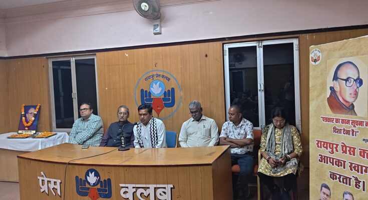 रायपुर। वरिष्ठ पत्रकार स्वर्गीय मधुकर खेर की जयंती और वरिष्ठ पत्रकार स्वर्गीय एस. के. दासगुप्ता की पुण्य तिथि के अवसर पर रायपुर प्रेस क्लब में एक गरिमामय स्मरण कार्यक्रम आयोजित कर उन्हें भावभीनी श्रद्धांजलि अर्पित की गई। कार्यक्रम में उपस्थित पत्रकारों ने दोनों दिवंगत पत्रकारों के व्यक्तित्व, कृतित्व और पत्रकारिता के प्रति उनके समर्पण को याद करते हुए उन्हें नमन किया।