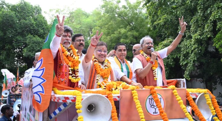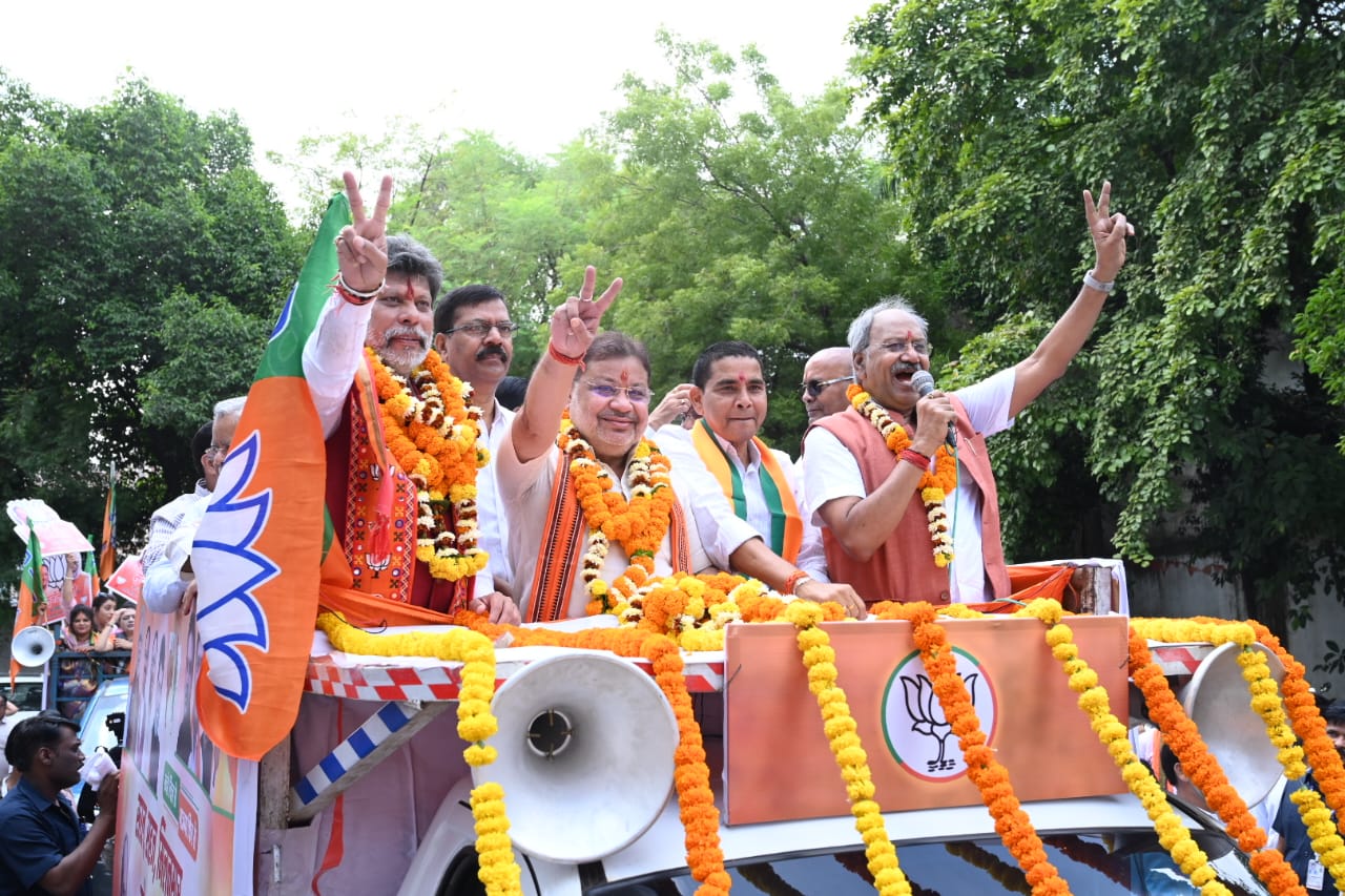 रायपुर। रायपुर दक्षिण विधानसभा क्षेत्र में होने जा रहे उप चुनाव के भाजपा प्रत्याशी सुनील सोनी की आज नामांकन रैली निकली, जिसमें मुख्यमंत्री विष्णु देव साय, भाजपा प्रदेश अध्यक्ष किरण सिंह देव ,उपमुख्यमंत्री अरुण साव एवं रायपुर सांसद बृजमोहन की खास मौजूदगी रही। एकात्म परिसर से निकली यह रैली कलेक्ट्रेट पहुंची जहां सोनी ने नामांकन दाखिल किया।