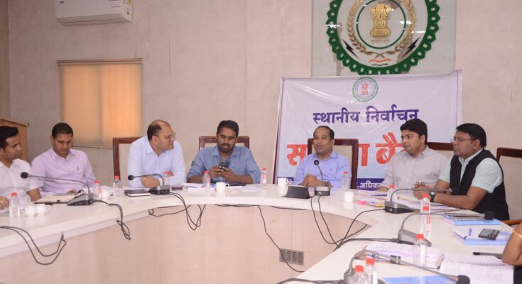रायपुर। 13 से 20 दिसंबर के बीच नगर निगम, नगर पालिका एवं नगर पंचायत चुनाव की तारीखों की घोषणा हो जाने के आसार नज़र रहे हैं। निकाय चुनाव को लेकर प्रशासनिक तैयारियां शुरु हो गई हैं। इसी कड़ी में कलेक्टर एवं जिला निर्वाचन अधिकारी डाॅ. गौरव सिंह ने आज कलेक्टोरेट परिसर स्थित रेडक्रास सभाकक्ष में नगर पालिका एवं त्रिस्तरीय पंचायत चुनाव 2024-25 की तैयारियों की समीक्षा बैठक ली। चुनावी कार्य के लिए रिटर्निंग ऑफिसर, सहायक रिटर्निंग ऑफिसर, नोडल एवं सहायक नोडल अधिकारियों की नियुक्ति की गई है।