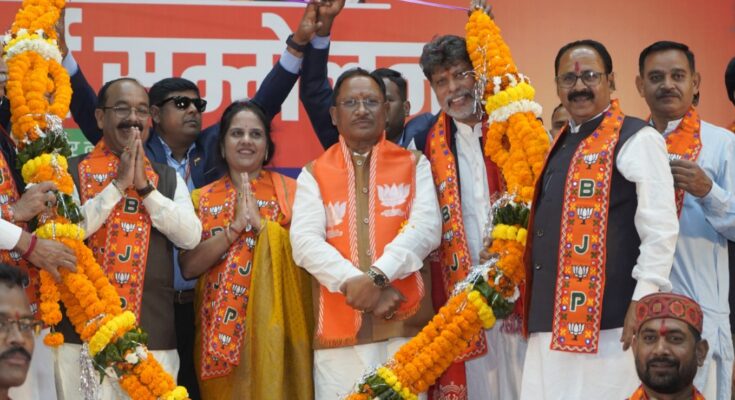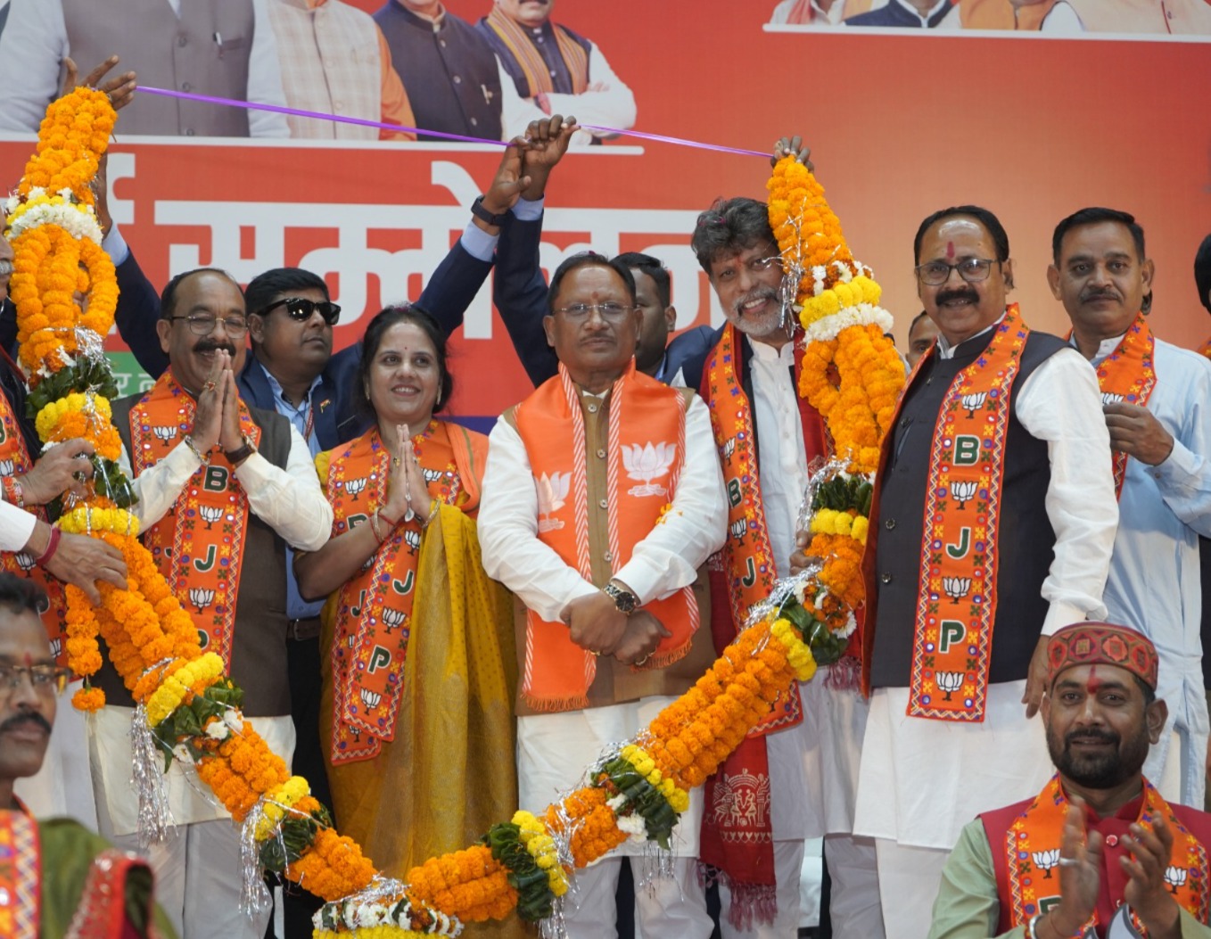 साय ने कहा कि छत्तीसगढ़ में हमारी सरकार बने 13 महीने हुए हैं। 13 महीने में भाजपा सरकार ने जो काम किए हैं उसे जनता ने देखा है। कांग्रेस सरकार के कार्यकाल में छत्तीसगढ़ की जो दुर्दशा हुई, वह सभी को मालूम है। कोई ऐसा क्षेत्र नहीं बचा, जहाँ कांग्रेस की सरकार ने भ्रष्टाचार नहीं किया, घोटाला नहीं किया। उन घोटालेबाजों का क्या हाल हुआ यह प्रदेश देख रहा है। कांग्रेस सरकार के समय में युवाओं के भविष्य के साथ खिलवाड़ करते हुए पीएससी तक में भ्रष्टाचार हुआ। प्रधानमंत्री नरेंद्र मोदी ने 2023 के विधानसभा चुनाव में प्रदेश को आश्वस्त किया था कि भाजपा की सरकार बनेगी तो पीएससी घोटाले की जाँच सीबीआई से कराई जाएगी। आज पीएससी घोटाले की जाँच सीबीआई कर रही है। उसके जो दोषी हैं जेल के अंदर हैं। जो अन्य दोषी हैं, उन्हें जेल जाना होगा। साय ने कहा कि आज कांग्रेस सरकार की सरपरस्ती में हुए तमाम घोटालों के सभी घोटालाबाज जेल के अंदर हैं। उनकी जमानत याचिकाएँ भी बार-बार खारिज हो रही हैं। कांग्रेस के राज में पूरा छत्तीसगढ़ अपराधगढ़ बन गया था। प्रदेश की जनता का विश्वास प्रदेश की कांग्रेस सरकार से उठ गया था। इन 13 महीनों में जब छत्तीसगढ़ में भाजपा की सरकार बनी तो हमने प्रदेश के 3 करोड़ छत्तीसगढ़िया के विश्वास को जीतने का काम किया है। आज 3 करोड़ छत्तीसगढ़ियों का विश्वास भाजपा की सरकार के प्रति है। मोदी की गारंटी में जो वादे हमने किए थे, उन वादों को पूरा किया है। चाहे प्रधानमंत्री आवास हो, चाहे किसानों से ₹3100 प्रति क्विंटल की दर पर प्रति एकड़ 21 क्विंटल धान की खरीदी, 2 वर्षों के बकाया बोनस का भुगतान हो, 70 लाख से अधिक माताओं एवं बहनों को महतारी वंदन योजना के तहत ₹1000 प्रतिमाह दिया जा रहा है। यह सभी कार्य हो रहा है। आज आदिवासी क्षेत्र में तेंदूपत्ता खरीदी ₹4000 से बढ़ाकर 5500 रु. प्रति मानक बोरा कर दिया है।