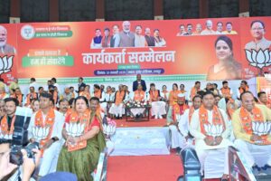 रायपुर। राजधानी रायपुर के बूढ़ापारा स्थित इंडोर स्टेडियम में आज भाजपा कार्यकर्ता सम्मेलन को संबोधित करते हुए मुख्यमंत्री ने आह्वान किया कि निकाय चुनाव को अब ज्यादा दिन नहीं बचे हैं। 11 फरवरी को मतदान है। सभी देवतुल्य कार्यकर्ताओं को प्रत्येक घर जाकर हर एक-एक मतदाता से संपर्क करना है और सरकार की उपलब्धियों को बताकर भाजपा के पक्ष में मतदान करने के लिए आग्रह करना है। अब रायपुर में ट्रिपल इंजन की सरकार बनाना है, ताकि राजधानी में विकास कार्य और भी तेज गति से हो सकें।