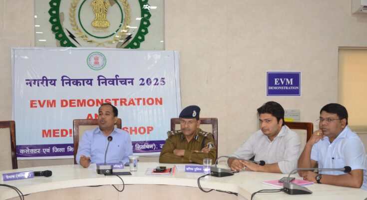 निकाय चुनाव तथा ईवीएम पर रेडक्रॉस सभाकक्ष कलेक्टोरेट में मीडिया के लिए कार्यशाला