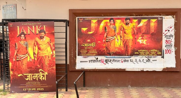 श्याम टॉकीज़ में लगा ‘जानकी- 1’ का कट आउट बना आकर्षण का केन्द्र