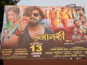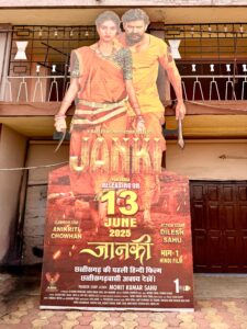 निर्माता मोहित साहू की फ़िल्म ‘जानकी- 1’ तेरह जून को पूरे भारतवर्ष में रिलीज़ होने जा रही है। दिलेश साहू व अनिकृति चौहान स्टारर फ़िल्म ‘जानकी- 1’ का राजधानी रायपुर के श्याम टॉकीज़ में लगा विशाल कट आउट आकर्षण का केन्द्र बना हुआ है। वहां लगे ‘जानकी’ के अन्य पोस्टर भी लोगों का ध्यान अपनी ओर खींच रहे हैं।