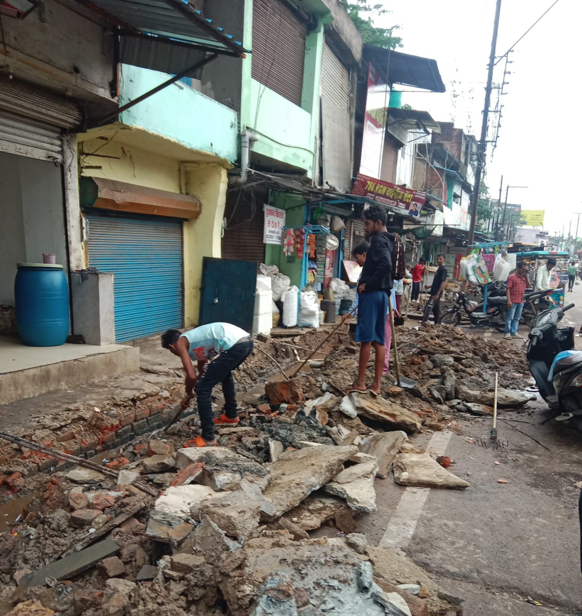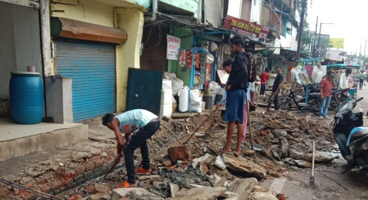 रायपुर। नगर निगम ने आज शास्त्री बाजार के सामने मुख्य बाजार मार्ग पर बंजारी वाले बाबा की मजार से एवरग्रीन चौक तक जाने वाले मार्ग पर दुकानों के सामने से पााटों को दो जेसीबी मशीन की सहायता से तोड़कर सड़क में जल भराव की समस्या को दूर करने कार्यवाही की। निगम कमिश्नर विश्वदीप के निर्देश पर जोन 4 जोन कमिश्नर अरुण ध्रुव और जोन स्वास्थ्य अधिकारी वीरेन्द्र चंद्राकर की उपस्थिति में यह कार्यवाही हुई। करीब 30 पाटे तोड़े गए। भारी मात्रा में कचरा जमा होने के कारण नाली जाम थी। नाली का मलमा हटाकर सफाई करवाई गई।