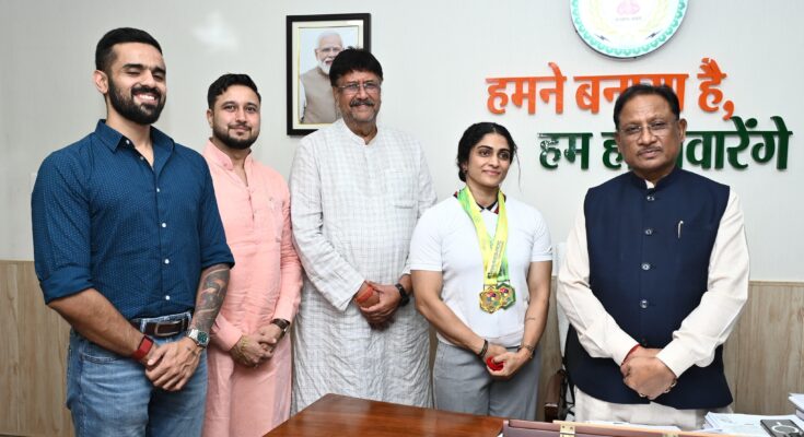मुख्यमंत्री से एशियन अफ्रीकन पैसिफिक पावर लिफ्टिंग चैंपियनशिप की स्वर्ण पदक विजेता नमी राय पारेख ने की मुलाकात