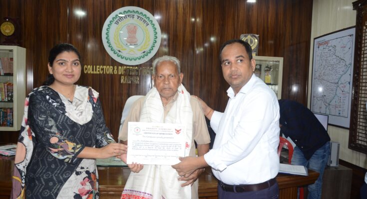 रायपुर। मैं मरणोपरांत मेडिकल के छात्र-छात्राओं के परिक्षण में काम आ सकूं इस आशा के साथ सेवानिवृत्त स्वास्थ्य पर्यवेक्षक भरतराम साहू ने “प्रोजेक्ट दधीचि” के अंतर्गत संपूर्ण देहदान का संकल्प लेकर समाज के लिए एक प्रेरणादायक मिसाल पेश की है। मुख्यमंत्री विष्णुदेव साय की मंशानुरूप जिले में प्रोजेक्ट दधीचि का संचालन किया जा रहा है। इसके तहत आमजन आगे आकर अपनी भागीदारी दे रहे है। आज कलेक्टर डॉ. गौरव सिंह ने भरतराम साहू को इस मानवीय निर्णय के लिए शॉल तथा प्रेरक पुस्तक देकर एवं अपर कलेक्टर सुश्री नम्रता जैन (आईएएस) ने प्रशस्ति पत्र प्रदान कर उन्हें सम्मानित किया।