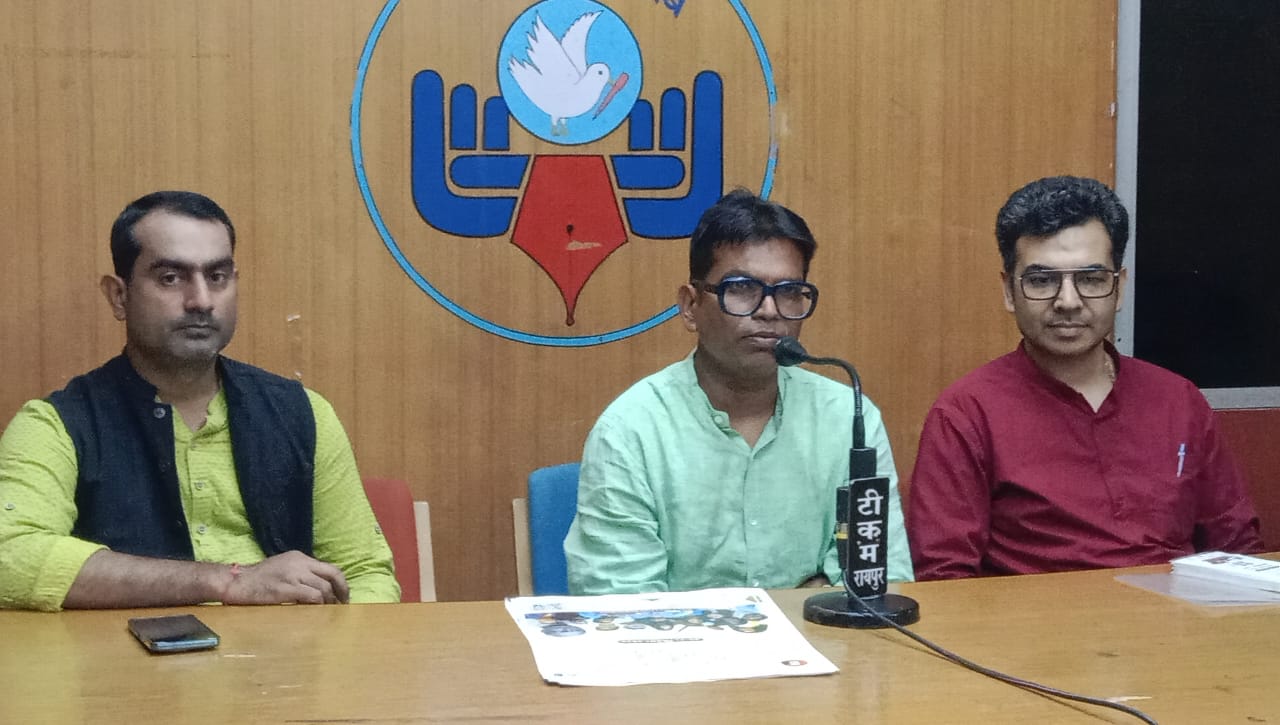पत्रकार वार्ता में रायपुर प्रेस क्लब अध्यक्ष प्रफुल्ल ठाकुर एवं आयोजन में महत्वपूर्ण भूमिका निभा रहे गौरव गिरजा शुक्ला उपस्थित थे।