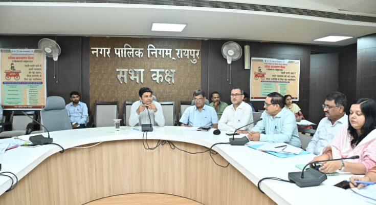 रायपुर। नगर निगम कमिश्नर विश्वदीप ने आज निगम मुख्यालय में समय सीमा टीएल बैठक लेकर विभिन्न कार्यों की प्रगति की जानकारी लेकर समीक्षा की। संबंधित निगम अधिकारियों को प्रगति को लेकर ज़रूरी निर्देश दिये। सभी जोन कमिश्नरों एवं कार्यपालन अभियताओं को अपने-अपने जोन में 22 खेल मैदान, तालाब, उद्यान की योजनाएं शीघ्र विकसित करने के निर्देश दिये। साथ ही छत्तीसगढ़ शासन के निर्देशानुसार 1 अक्टूबर से रायपुर नगर निगम मुख्यालय एवं सभी 10 जोनो में ई ऑफिस योजना के तहत कार्य प्रारंभ करने कहा। पिछले दिनों जिस जोन से अच्छे रिजल्ट आए उसे निगम कमिश्नर ने सराहा।