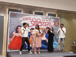 ओपन मीट वाली यह महफ़िल ‘एम.ए.प्रीवियस’ के सितारों दीपक साहू, राज वर्मा, हिरनमयी दास व अराधना साहू जैसे सितारों से सजी थी। साथ ही फ़िल्म के लेखक एवं डायरेक्टर प्रणव झा मंच की शोभा बढ़ा रहे थे। यू ट्यूबर्स एवं इंस्टाग्राम इंफ्लुअर्स की ओर से जो सवाल हुए उनका बड़े ही बेबाक़ी से ज़वाब इन फ़िल्म हस्तियों ने दिया। फ़िल्म के चारों कलाकारों ने ‘एम.ए. प्रीवियस’ के सुमधुर गीतों पर शानदार नृत्य भी प्रस्तुत किया। इस अवसर पर कौशल शर्मा की फ़िल्म पत्रिका ‘छत्तीसगढ़ सिनेमा स्कोप’ का विमोचन डायरेक्टर प्रणव झा समेत कलाकार राज वर्मा, दीपक साहू, हिरनमयी दास, वरिष्ठ पत्रकार अनिरुद्ध दुबे, पीआरओ दिलीप नामपल्लीवार एवं पत्रकार पी.एल.एन. लक्की ने किया। कार्यक्रम का संचालन लक्ष्य टॉरगेट ने किया।
