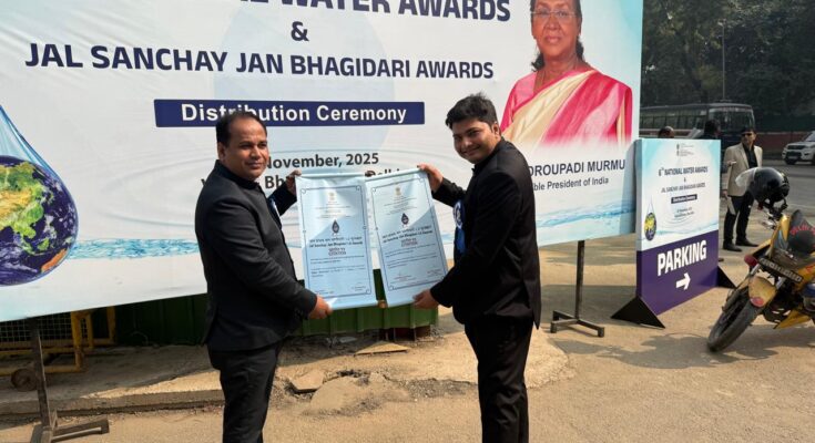 रायपुर। राष्ट्रपति श्रीमती द्रौपदी मुर्मु ने आज रायपुर जिले को जल संरक्षण के क्षेत्र में उल्लेखनीय योगदान के लिए विज्ञान भवन दिल्ली में आयोजित समारोह में पुरस्कृत किया। यह पुरस्कार कलेक्टर डॉ. गौरव सिंह और नगर निगम कमिश्नर विश्वदीप ने ग्रहण किया।