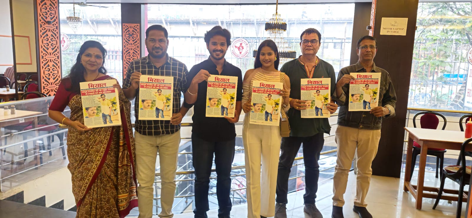 रायपुर। छत्तीसगढ़ की फ़िल्म एवं संस्कृति पर केन्द्रित फ़ेमस पत्रिका ‘मिसाल’ के नये अंक का लोकार्पण आज राजधानी रायपुर के किसी ख़ास ठिकाने पर हुआ। इस बार पत्रिका के कव्हर पेज़ पर छत्तीसगढ़ी सिनेमा के नवोदित सितारे आयुष राजवैद्य पर संक्षिप्त लेकिन दिलचस्प स्टोरी है। लोकार्पण अवसर पर हीरो आयुष राजवैद्य समेत नई एक्ट्रेस तिरांजलि गोस्वामी, प्रोड्यूसर-डायरेक्टर अनुमोद राजवैद्य, जानी-मानी एंकर एवं करैक्टर आर्टिस्ट प्रीति राजवैद्य, प्रोड्यूसर अलक राय तथा ‘मिसाल’ के एडिटर अनिरुद्ध दुबे उपस्थित थे।