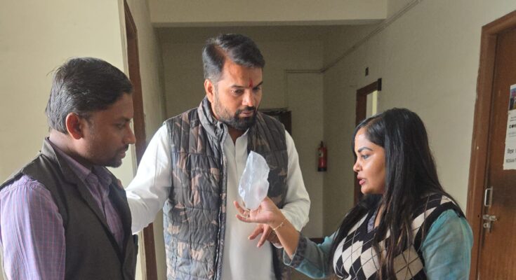 रायपुर। वामन राव लाखे वार्ड के जागरुक नागरिक विजय सोना ने आज एक डेंगू मच्छर को पॉलीथीन में कैद किया और उसे नगर निगम नेता प्रतिपक्ष आकाश तिवारी के हवाले किया। नगर निगम मुख्यालय में आकाश तिवारी ने निगम स्वास्थ्य अधिकारी डॉ. तृप्ति पाणीग्राही को डेंगू मच्छर को दिखाया।