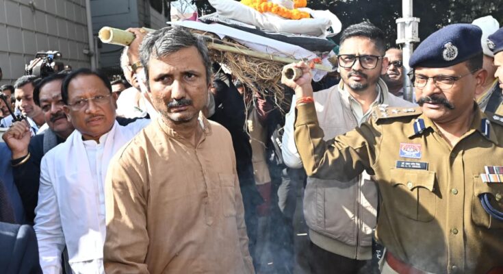 रायपुर। छत्तीसगढ़ के माटी पुत्र, प्रख्यात साहित्यकार एवं ज्ञानपीठ पुरस्कार से सम्मानित दिवंगत श्री विनोद कुमार शुक्ल को आज मारवाड़ी मुक्तिधाम में संपूर्ण राजकीय सम्मान के साथ अंतिम विदाई दी गई। मुख्यमंत्री विष्णु देव साय आज राजधानी रायपुर के शैलेन्द्र नगर स्थित वरिष्ठ साहित्यकार एवं ज्ञानपीठ पुरस्कार से सम्मानित स्वर्गीय श्री विनोद कुमार शुक्ल के निवास पहुँचे और उनके अंतिम दर्शन कर उन्हें श्रद्धांजलि अर्पित की। मुख्यमंत्री ने उनके पार्थिव शरीर पर पुष्प चक्र अर्पित कर नमन किया तथा ईश्वर से दिवंगत आत्मा की शांति के लिए प्रार्थना की।
