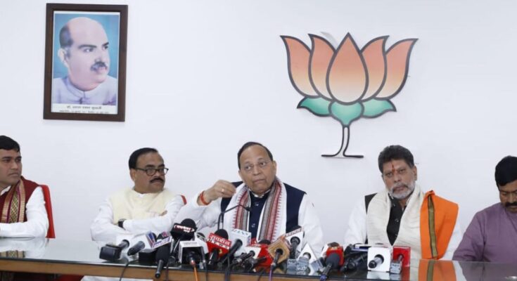 पत्रकार वार्ता में भाजपा प्रदेश अध्यक्ष किरण देव, प्रदेश महामंत्री द्वय डॉ. नवीन मार्कण्डेय व यशवंत जैन, प्रदेश उपाध्यक्ष जगन्नाथ पाणिग्रही उपस्थित थे।